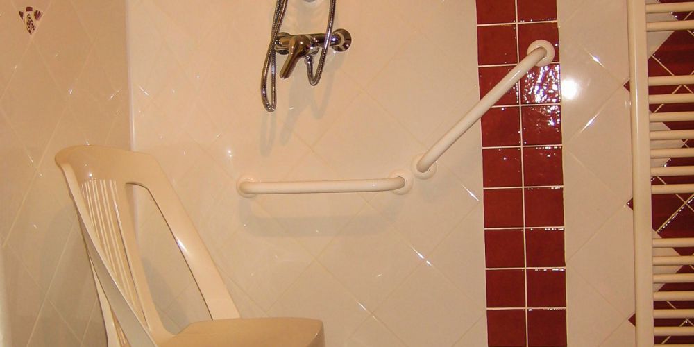 There's a 1.20 x 1.20 m, "douche à l'italienne" which can be used with a wheel chair