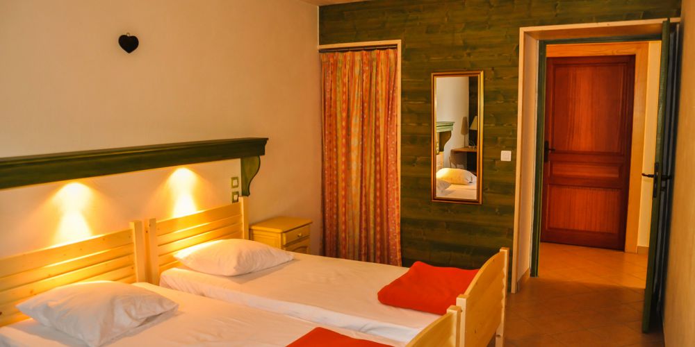 - the green room with 2 single beds a cupboard and a desk